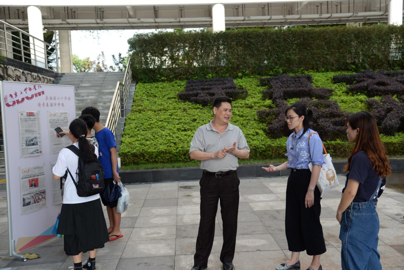 5月15日至5月17日,党委宣传部在白云校区校训广场和明德楼区域开展“庆中华人民共和国成立七十周年,逐青春韶华梦想”主题校报展活动。本次为期三天的校报展,通过展示记录学校建设历程的《广东工贸学院报》和展示祖国繁荣昌盛的中央、省委机关报,与广大师生一同回顾学校61年发展成就,一同庆祝中华人民共和国成立70周年。