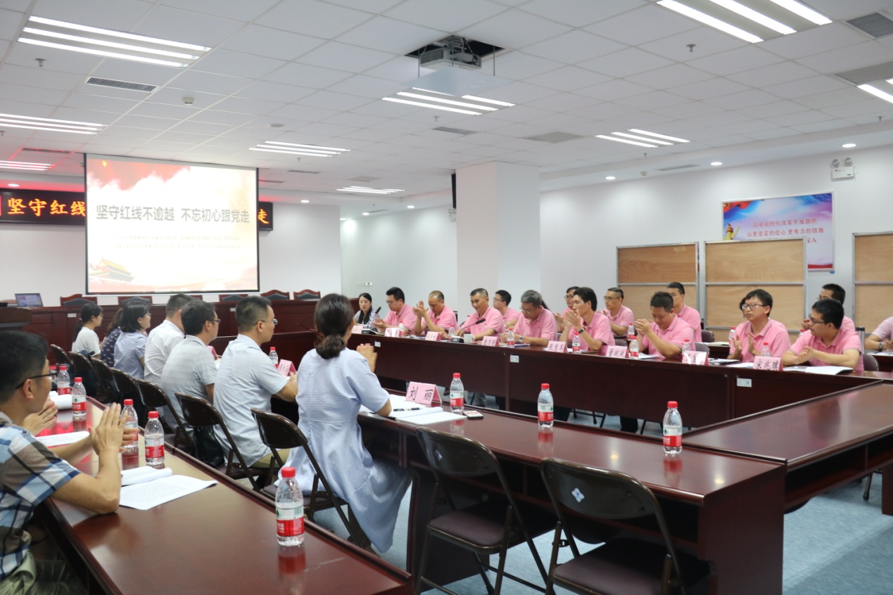为加强党的基层组织建设,不断规范和强化基层组织建设,激活基层组织“神经末梢” 活力,进一步提升党日活动质量,2019年7月2日下午,测绘遥感信息学院教工第一党支部、教工第三党支部,学生第一党支部一行前往广东省国土资源测绘院萝岗基地,与广东省国土资源测绘院工程测量队党支部、海洋测绘队党支部联合开展了以“坚守红线不逾越,不忘初心跟党走”共建活动。