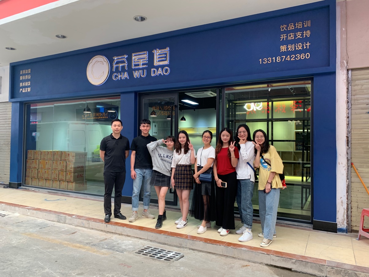 当日早上十点左右,我们在梁总的带领下,先参观了公司旗下一个奶茶品牌终端门店样板,并向同学们介绍了终端门店提供的服务,包括产品定制、饮品培训、开店支持和策划设计等业务,方便创业者的进入。