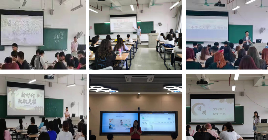 教育活动主要通过课堂宣讲的方式进行,由老师们通过思想政治理论课将教育活动的内容融入思政课堂,把学习党史活动与清明祭祀活动结合起来,把祭奠先人与祭奠革命先烈结合起来。此次教育活动,使同学们以实际行动影响和带动身边的人,自觉向亲属、周围群众宣传绿色环保、文明健康的祭扫方式,做移风易俗、文明祭扫的先行者、宣传者,进一步增强了同学们现代祭祀、尊老敬先和缅怀革命烈士的理念,对巩固疫情防控成果、树立了移风易俗新风起到了积极的推动作用。