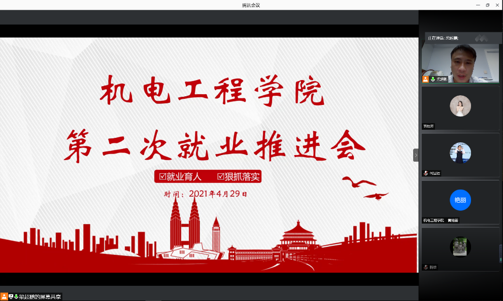 4月29日,机电工程学院召开了2021届毕业生第二次就业推进会。机电工程学院党总支书记邵超城、党总支副书记、院长徐勇军、党总支副书记梁超鹏、副院长丘永亮和2021届全体毕业设计指导老师及毕业班班主任、辅导员参加了此次会议,会议由梁超鹏主持。
