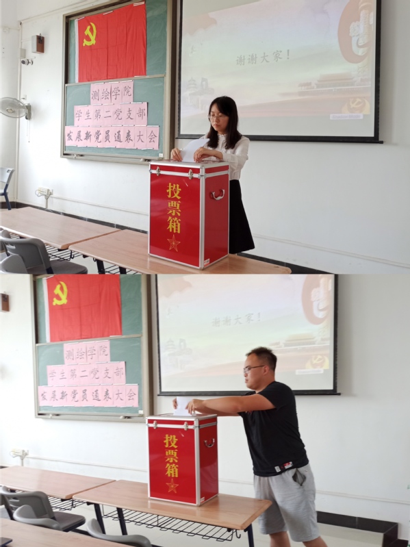 与会党员发表意见,与会正式党员讨论,并进行无记名投票表决。随后,支部书记冯臻佳老师宣读了决议,并进行了总结发言。冯老师首先向今天通表的同志表示祝贺,同时提出要加强党的理论知识学习,并要以党员标准严格要求自己,在学习、工作、实习等各方面充分发挥模范带头作用。