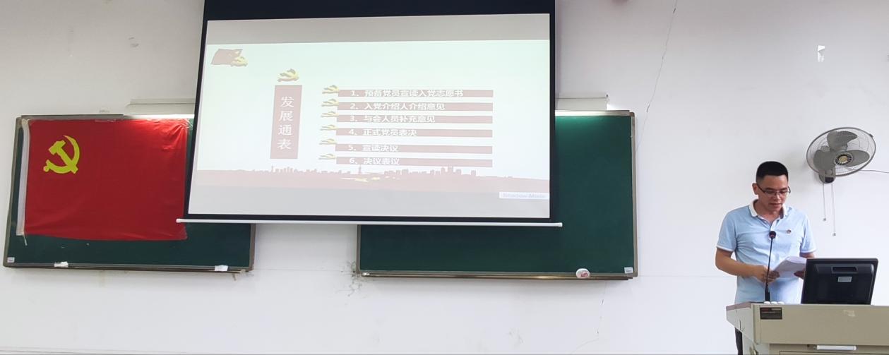 支部坚持严格按照《中国共产党发展党员的有关规定》流程进行,按照“早教育、早选苗、早培养”的党员发展原则,严格执行“三投票、五公示、一答辩”制度下,做到成熟一个发展一个。会议议程主要是发展对象宣读入党志愿、入党介绍人介绍意见、与会人员补充意见和建议、正式党员无记名投票表决等环节。整个过程严格按照《中国共产党发展党员的有关规定》流程进行,大会庄重肃穆。