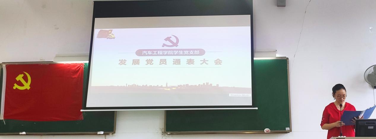 5月13日上午9点30分,汽车工程学院学生党支部于明德楼二区101召开预备党员发展通表大会,就钟丽如等28名同志转为中国共产党预备党员的申请进行讨论、表决。本次会议由支部书记刘彩云主持,出席本次会议的有学院党总支副书记、院长王艳芬、党总支副书记欧敏、学院党总支纪检委员、副院长潘梦鹞、党总支宣传委员、组织员陈锐钊、党总支青年委员兼学生党支部纪检委员蔡少德、支部其他正式党员、预备党员、发展对象和入党介绍人。