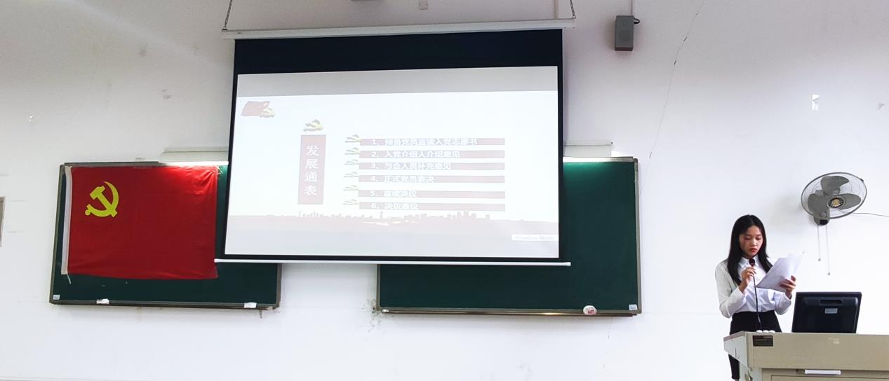 随后,入党介绍人根据发展对象在学习、生活、工作等方面的表现发表入党介绍意见,与会人员补充意见和建议。接着,在场有投票表决的正式党员对申请入党的发展对象逐一进行讨论并进行无记名投票表决。最后,支部通过了《关于通过接收钟丽如等28名同志为预备党员的决议》。