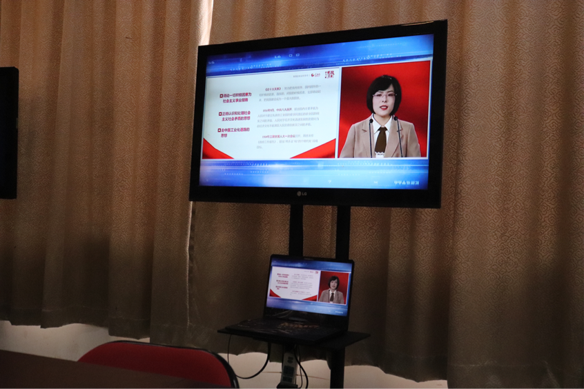 正在认真观看思政课的委员们