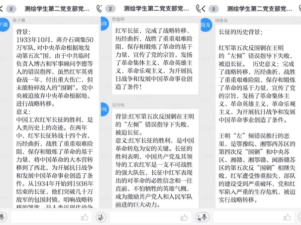 观看纪录片后,学生党员们进行了交流讨论,加深了对红军长征的历史背景与意义的理解。