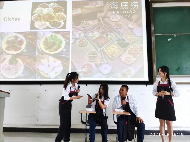 2021年6月8日,由应用外语学院《综合英语》课程思政项目组承办的课程思政英文展示大赛在明德楼2区104举行。本次大赛的目的是为提高商英专业学生的英语口语水平和跨文化交际能力,促进英语学习,锻炼英语口语,展示英语口语水平;同时为加深同学们对新时代中国发展的认识,培养年轻学生对中国国情和文化的认同感,增强在跨文化交际中的优势和自信心。本次比赛现场邀请到了马克思主义学院的晏意华老师、机电工程学院的孔令叶老师以及外语学院英语系主任肖铁蕾老师和钟文老师作为比赛的评委。