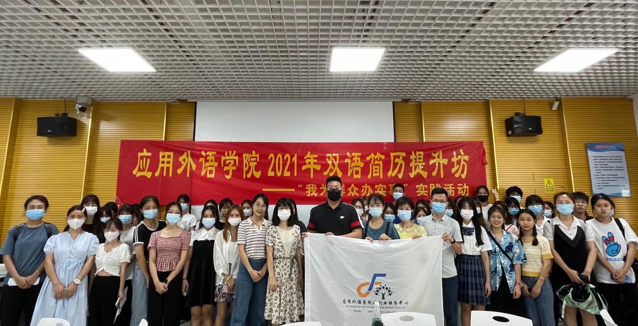 据悉,本次活动应用外语学院第四届双语简历大赛的环节之一,大赛共吸引300多名同学踊跃投递作品参加,决赛作品将以双语简历的方式最终呈现。此外,应用外语学院2021年以来已陆续开展了云双语求职自我介绍大赛、大学生职业规划大赛、“育苗计划”校园创新创业项目路演和双语简历大赛等系列就业创业活动,以扎实推进就业创业工作的实际行动服务国家大局所需、庆祝建党100周年。