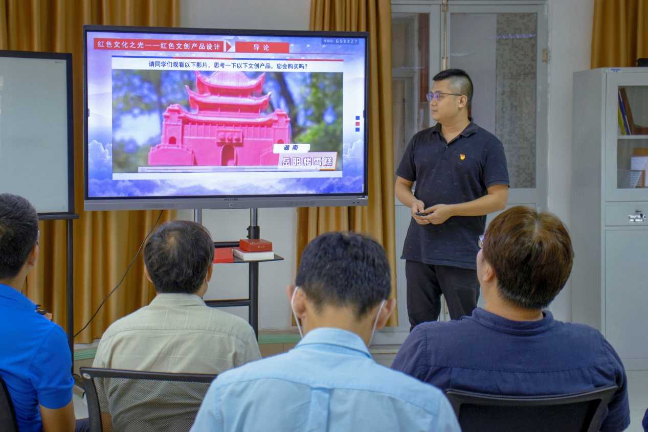 接着,会议由支部优秀党员黎少老师开讲题为《传承红色基因,红色文创贯穿到设计教学》的微党课。黎少老师介绍了在数字媒体专业群中各课程思政开展情况、开展红色文创的设计方法、设计案例,把红色文创贯穿到设计教学的实际以及近期举办各类红色文创比赛所取得的成果。