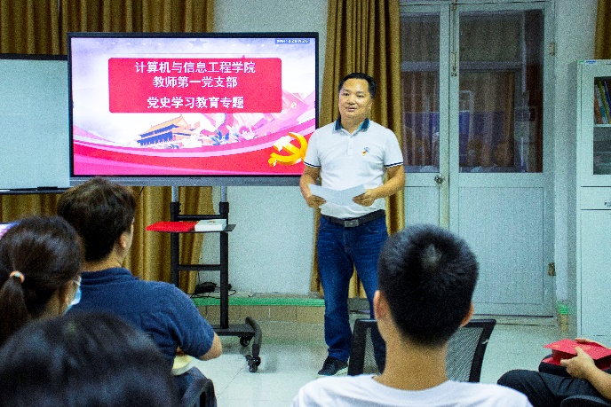 6月15日下午,计算机学院教师第一党支部在实训楼二楼会议室开展“传承红色基因 牢记初心使命”特色主题党课活动。