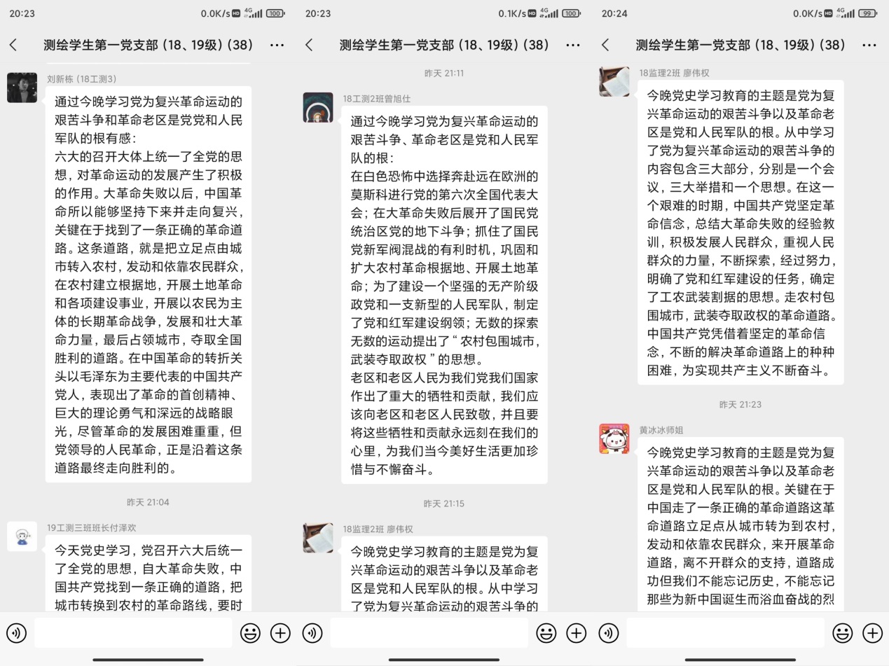 在学习结束后,学生党员在支部“移动微课堂”进行了讨论,支部党员对本次的学习心得进行了分享。