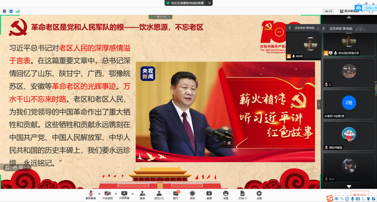 为扎实开展好党史学习教育,提高学生党员参加党史学习教育的积极性与主动性,测绘遥感信息学院学生第一党支部自3月份以来持续开展“党员讲党史”系列活动。5月18日下午,支部在白云校区第一会议室召开了“讲党史、筑初心”党史学习教育专题活动,在活动中开展了“党员讲党史”系列活动的第十讲。此外,结合支部学生党员基本分散在各地实习的实际情况,18日晚支部在校外参与实习的党员利用腾讯会议和微信“移动微课堂”等平台开展了线上学习。