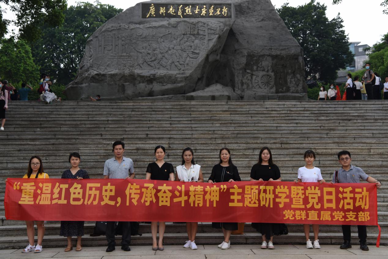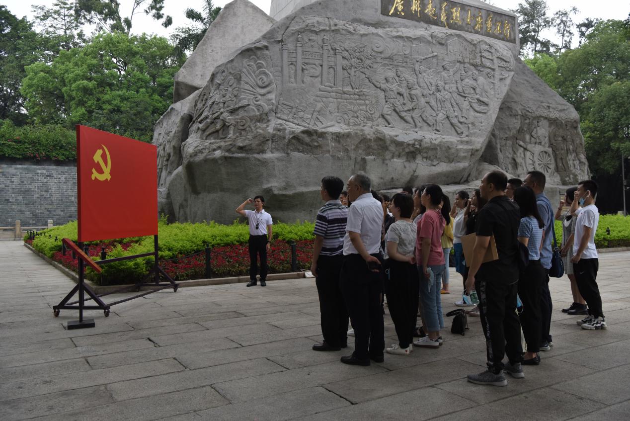 6月24日下午,党群直属党支部在支部书记成海涛的带领下,前往广州起义烈士陵园开展“重温红色历史,传承奋斗精神”主题研学暨党日活动,活动主题内容包括,瞻仰广州起义纪念碑并敬献鲜花、轩辕亭前讲党史、先辈雕像前重温入党誓词。深入学习贯彻习近平总书记在参观“‘不忘初心、牢记使命’中国共产党历史展览”时的重要讲话精神和习近平总书记关于革命传统教育的重要论述。