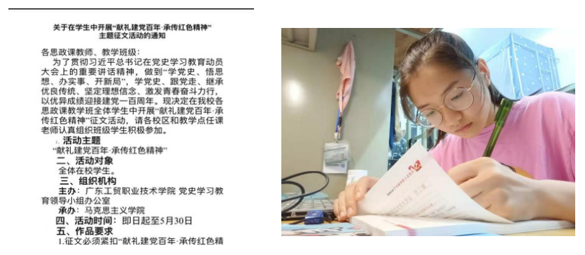 为贯彻落实习近平总书记在党史学习教育动员大会上的重要讲话精神,鼓励广大师生做到学党史、跟党走,继承党的优良传统,坚定理想信念,以优异成绩迎接建党一百周年,根据威尼斯官网马克思主义学院在学生中开展“献礼建党百年 承传红色精神”主题征文活动的通知精神,马院教师积极组织班级学生踊跃参加。