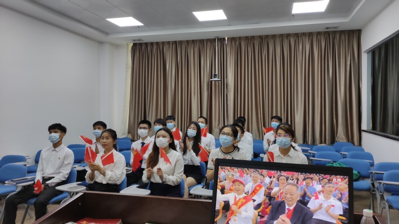 7月1日上午8点整,机电工程学院党总支组织师生观看“庆祝中国共产党成立100周年大会”。师生党支部,各班班级团支部以不同的方式,共同参与并见证这光辉时刻,学校党委委员、副校长刘贻新参加此次观看活动。