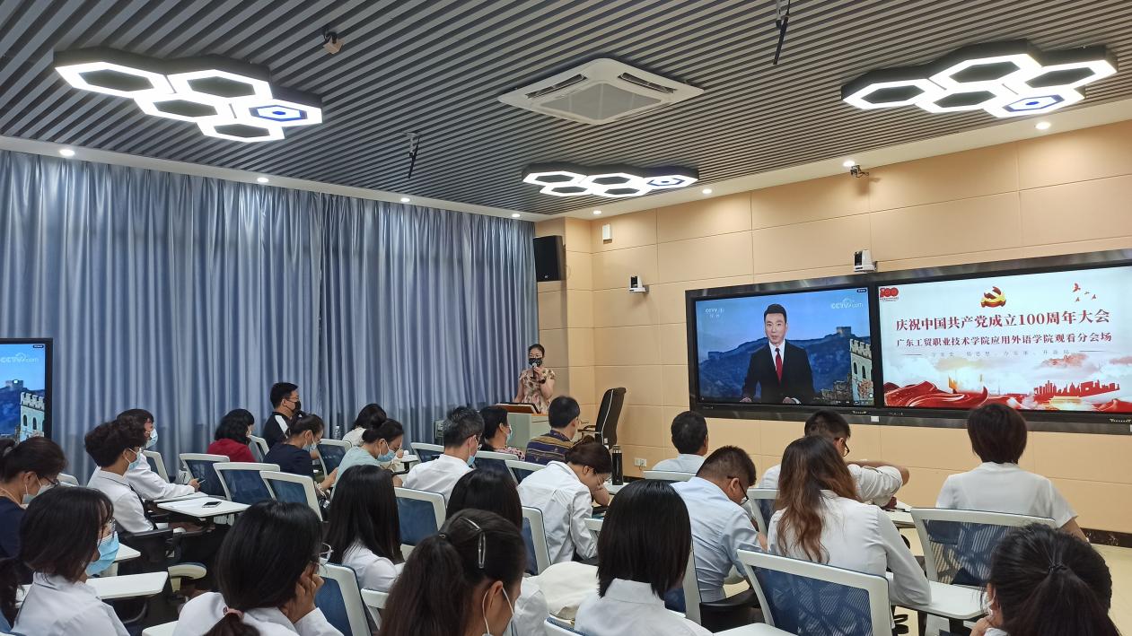 7月1日,庆祝中国共产党成立100周年大会在北京天安门广场隆重举行。中共中央总书记、国家主席、中央军委主席习近平发表重要讲话,应用外语学院党总支组织学院党政领导班子及全体师生党员60人于明德楼1区316集中观看直播。直播结束后,外语学院随即召开学习习近平总书记在庆祝中国共产党成立100周年大会上重要讲话精神师生座谈会,学院党总支负责人、班子成员、师生党支部书记及学生党员代表分享了聆听习近平总书记重要讲话的所思所想所感。会议由学院党总支负责人、院长彭枚芳主持。