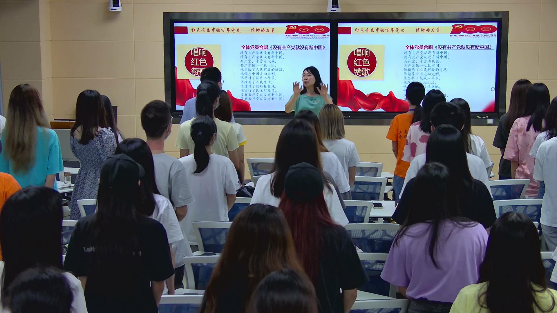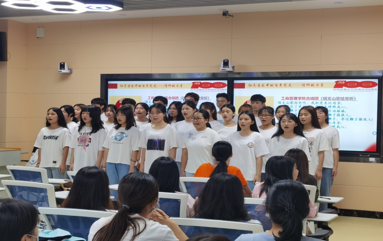 课上,周清莲还请工商管理学合唱团现场演唱《唱支山歌给党听》,用歌声表达对中国共产党的深深祝福。