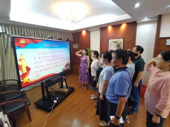 与会党员们重温入党誓词,会议在全体党员入党誓词声中结束。