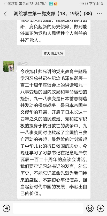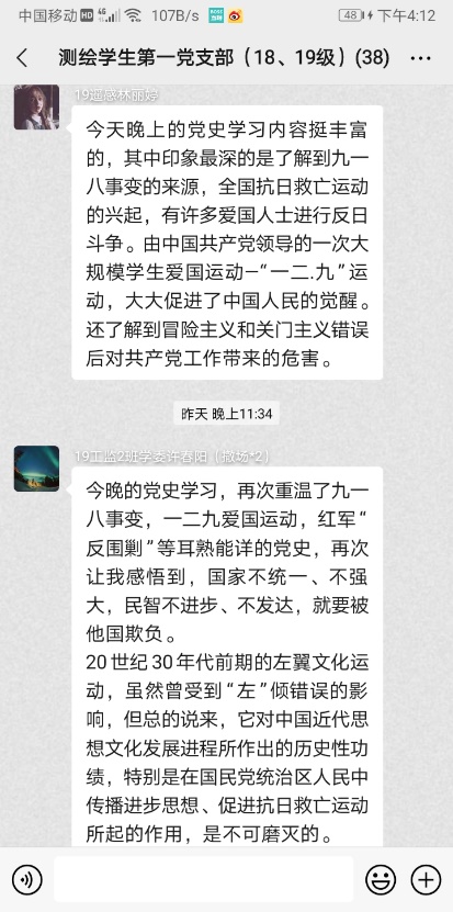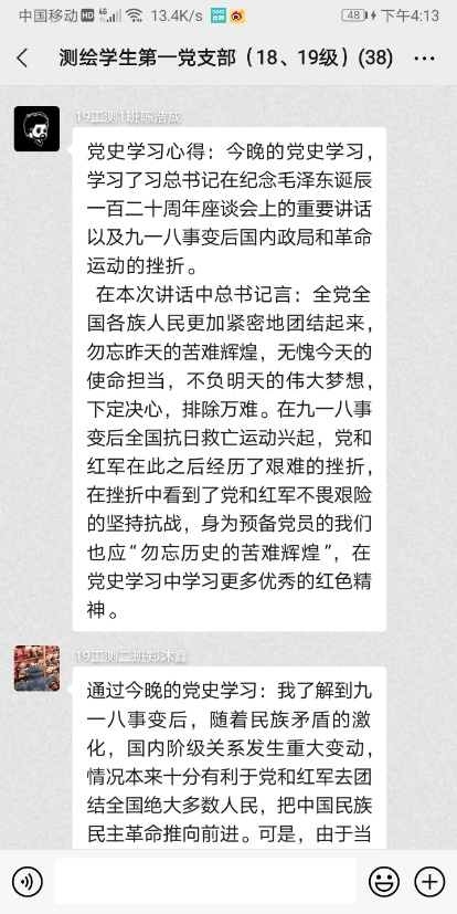 在学习结束后,学生党员在支部“移动微课堂”进行了讨论,支部成员们纷纷对本次的学习内容进行了讨论。