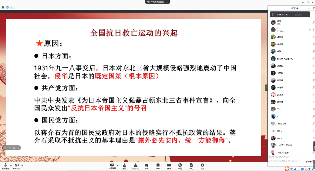 学生党员曾旭仕主讲《九一八事变后的国内政局和革命运动的挫折》