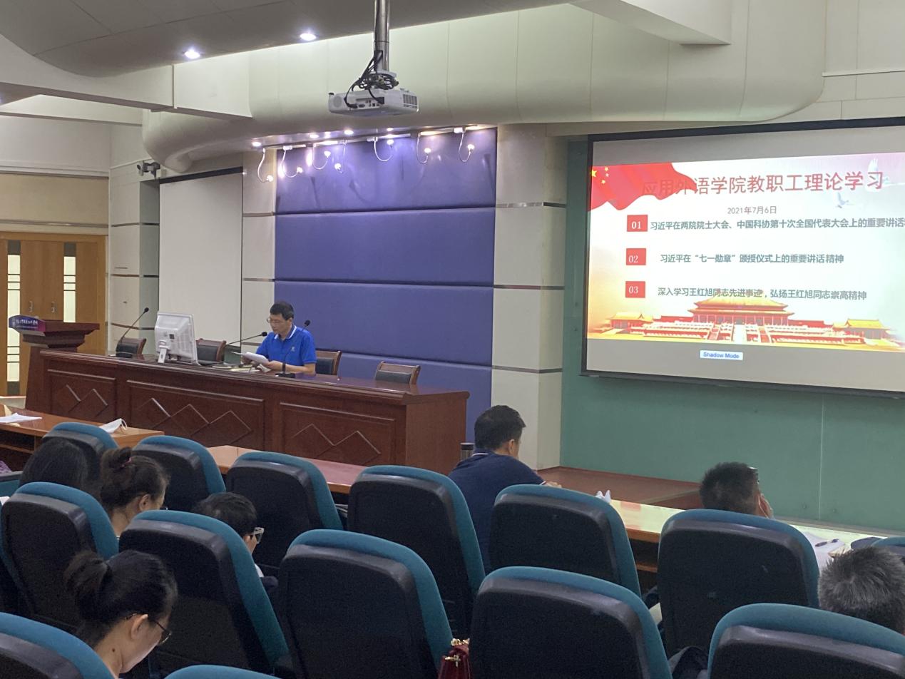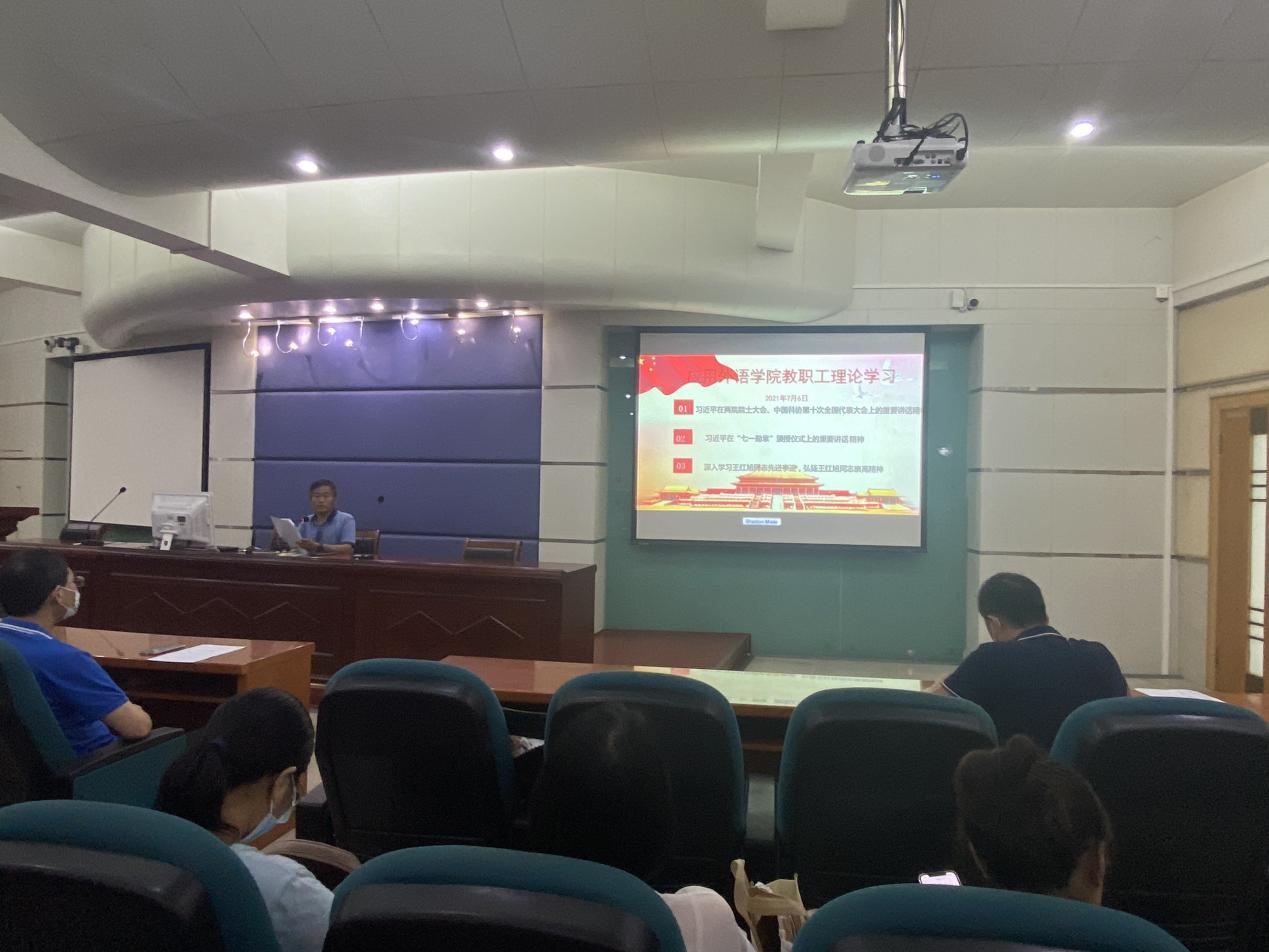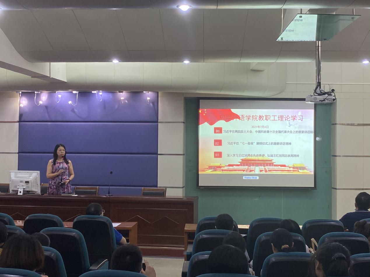 7月6日下午,应用外语学院在天河校区西区报告厅召开教职工理论学习专题会议暨2020-2021学年第一学期期末全体教职工大会,学院党总支负责人、院长彭枚芳、党总支副书记罗春科、副院长杨国民、副院长邓国栋以及全体教职工参加了此次会议。会议由彭枚芳主持,分三个阶段进行。