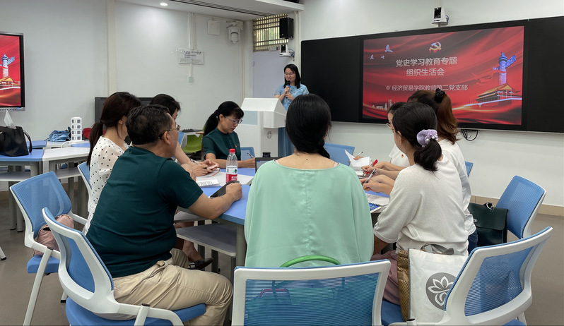 根据《中共中央关于在全党开展党史学习教育的通知》和《关于召开党史学习教育专题组织生活会有关问题的答复》精神,2021年7月8日下午,经济贸易学院教师第二党支部在智慧教室205召开党史学习教育专题组织生活会。本次会议由支部书记蒋晶同志主持,全体第二支部党员老师参会。