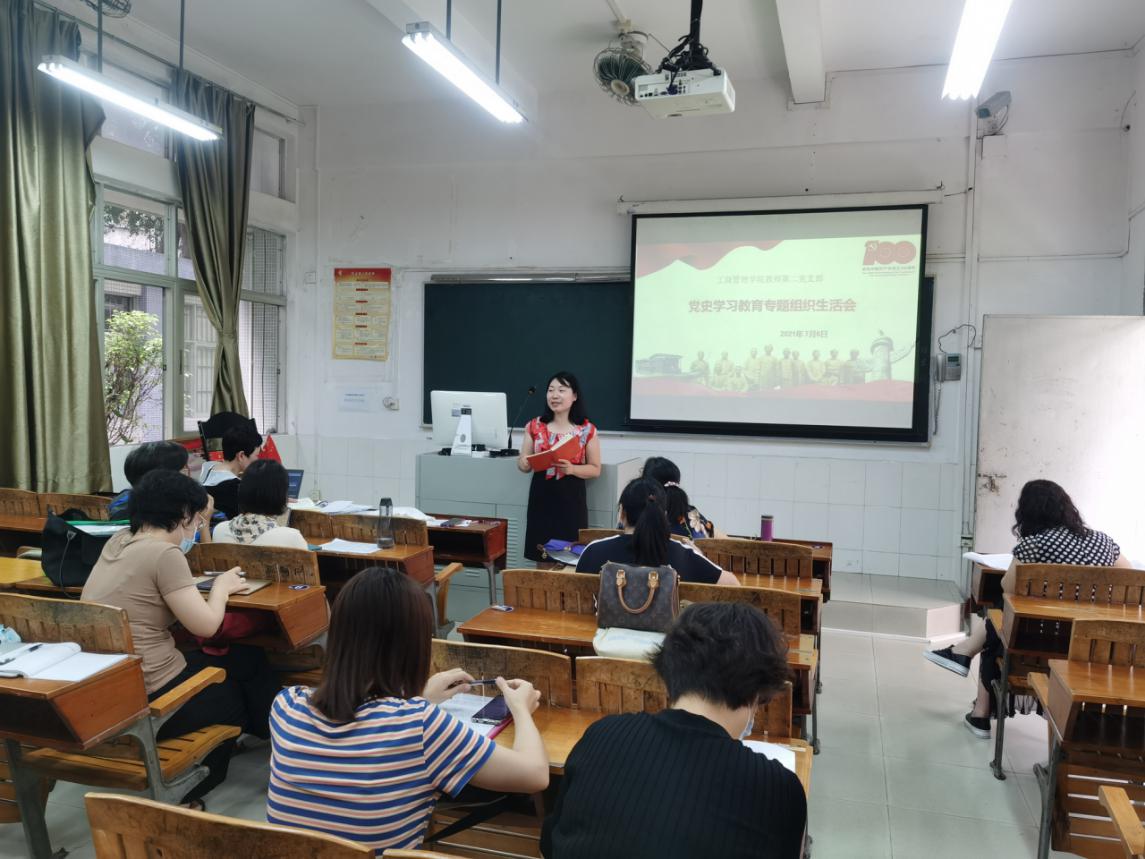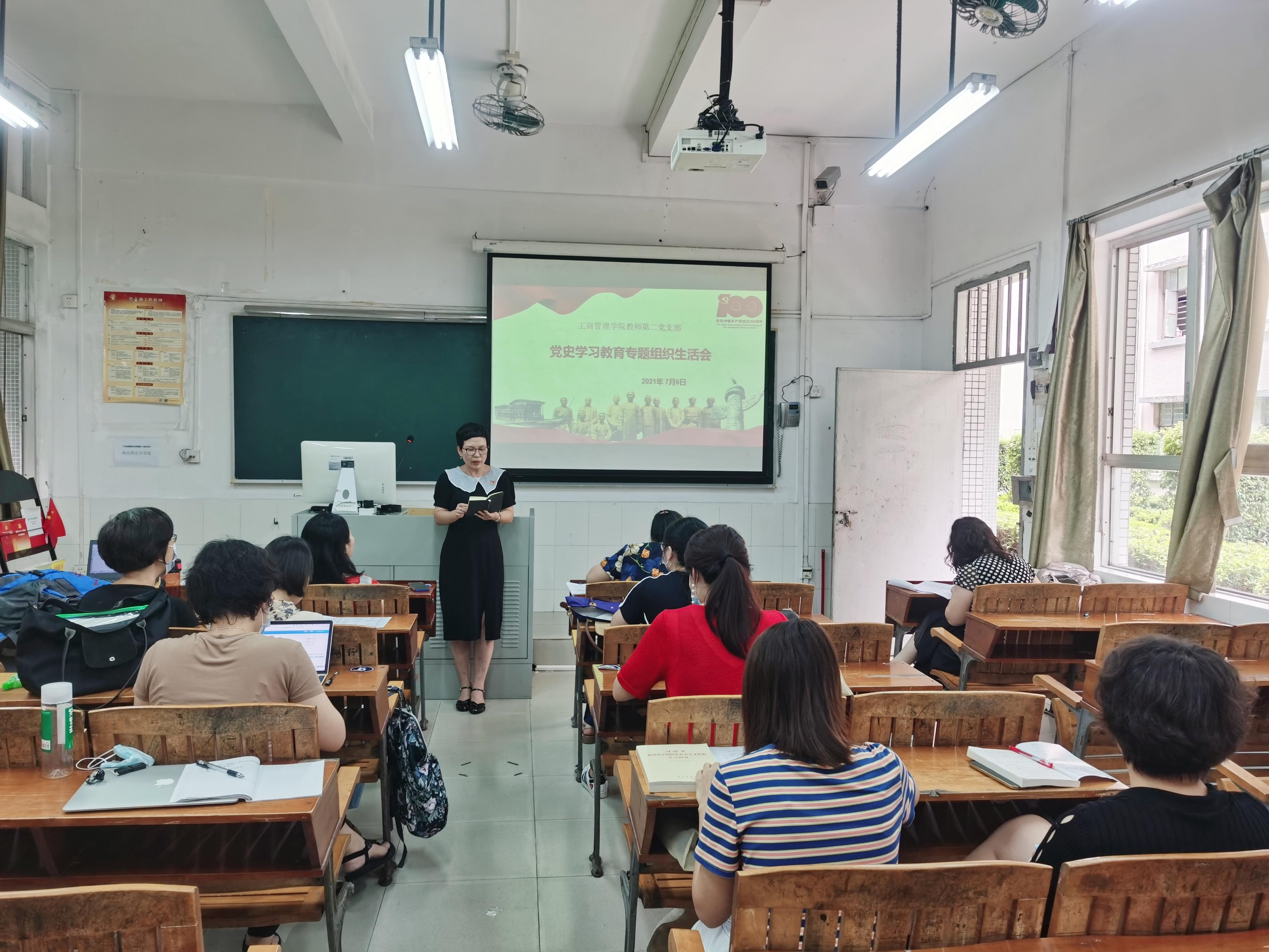 7月6日下午,工商管理学院教师第二党支部在天河校区教学楼103召开党史学习教育专题组织生活会。会议由支部书记梁巧丽主持,工商管理学院党总支书记周清莲、副院长倪春丽以普通党员身份参加。