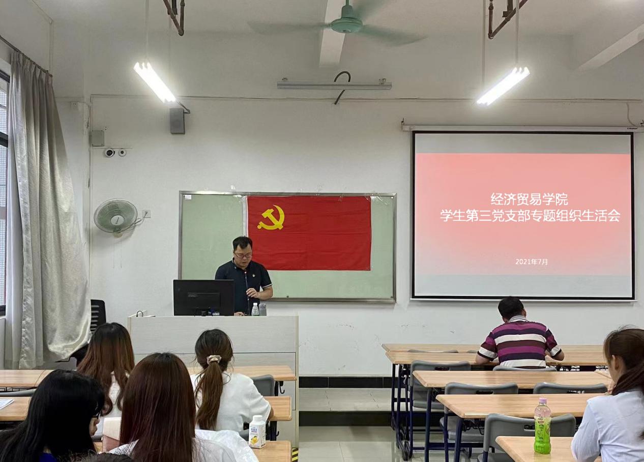 根据学校党委在党史学习教育中关于开展专题组织生活会的部署要求,7月6日,经济贸易学院学生第一党支部、学生第二党支部、学生第三党支部在明德楼召开党史学习教育专题组织生活会。会议由支部书记主持,全体支部党员参加了会议。
