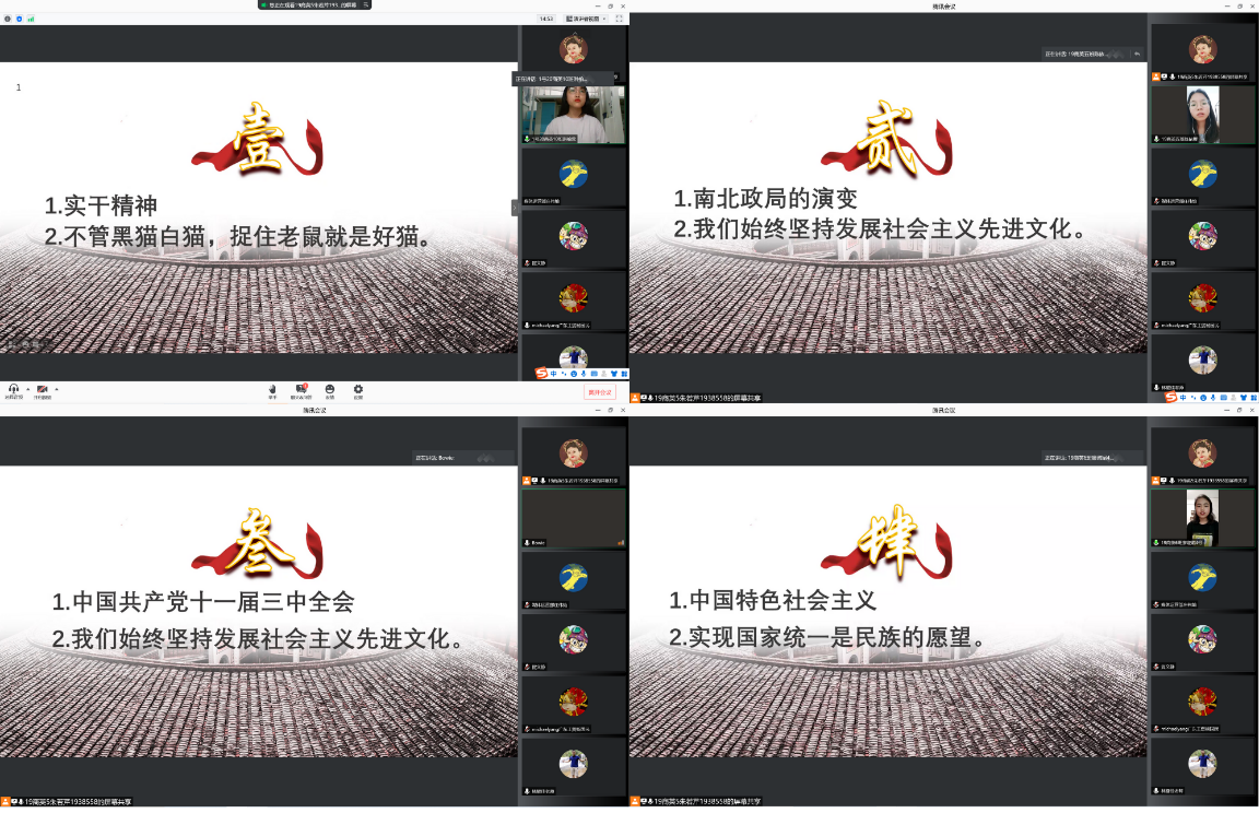 7月11日,“译通四史,永跟党走”金句热词翻译大赛决赛于19:00准时拉开帷幕。本次决赛通过线上进行,由学生会执行主席朱若芹主持。此次大赛的评委阵容强大,由学院副院长杨国民、副院长邓国栋、日语专业老师贺文静、韩语专业老师王宗喆组成。