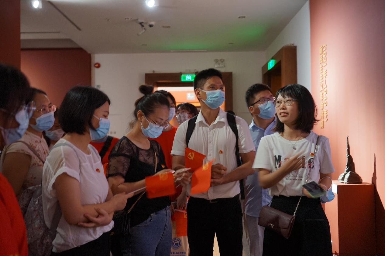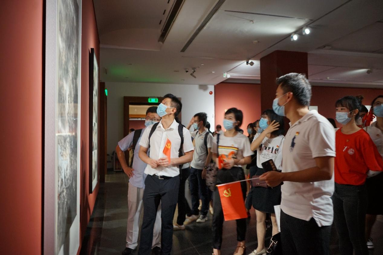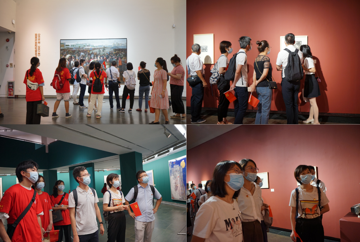 为庆祝中国共产党成立100周年,激发凝聚党员师生们全面建设社会主义现代化国家、实现中华民族伟大复兴中国梦的磅礴力量,7月14日早上,应用外语学院党总支组织党员老师、入党积极分子、学院“青翼”三下乡暑期社会实践成员赴广东美术馆参观“广东省庆祝中国共产党成立100周年美术作品展”,开展党史学习教育主题党日活动,引导师生通过参观美术作品的形式,进一步了解中国共产党百年来在不同时期和各个方面所取得的辉煌成就。