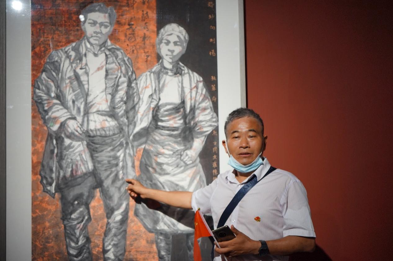 在展览中,大家观赏了反映新民主主义革命时期(1921年-1949年)、社会主义革命和建设时期(1949年-1978年)、改革开放和社会主义现代化建设新时期(1978年-2012年)、中国特色社会主义进入新时代(2012年至今)等四个重要历史时期时代特征的国画、油画、版画及雕塑等多个门类的艺术作品,作品生动展现了中国共产党百年来带领中国人民进行革命、建设、改革的壮美画卷,热情讴歌了党的十八大以来,国家取得的历史性成就、发生的历史性变革,充分展示了全面建设社会主义现代化国家的光明前景。