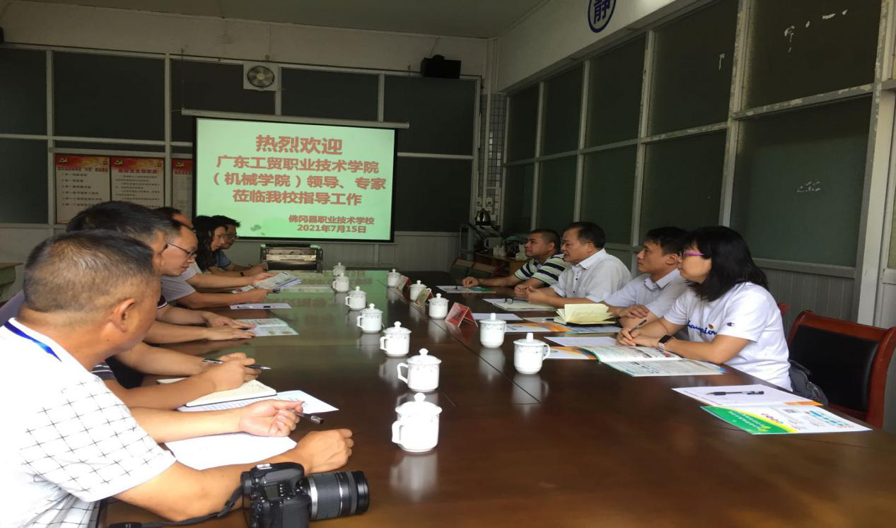 其次,邵超城一行抵达佛冈职中,双方进行亲切会谈。会议上,佛冈职中首先向学院介绍职中学生生源、升学、就业等具体情况;随后邵超城介绍了学校及学院的建设发展史,与佛冈职中研讨3+2人才培养方案,并针对乡村振兴战略与教育现状做深入调研。最后,双方就合作教学展开探讨并达成一致意见。
