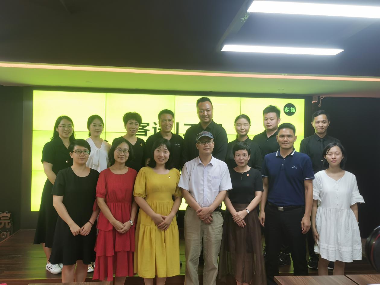 7月8日,工商管理学院第二批现代学徒制试点商务管理专业团队在广东客语餐饮有限公司隆重举行客语“现代学徒制”教学推进会暨导师互聘和实践基地授牌仪式。学院党总支书记周清莲、院长邹德军、党总支副书记谢宏祥、副院长倪春丽、商业服务系主任何美贤、办公室主任王家祺,广东客语总经理陈景新、副总经理曾开源、人资总监王燎原、营运助理兼教学秘书陈秋洁等参加了此次会议。