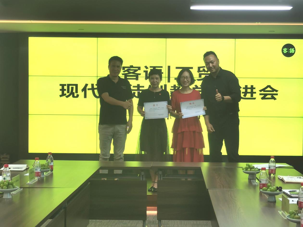 曾开源副总经理表示,客语十分珍惜此次国家政策和学校学徒制项目给予的合作机会,将以高标准培养学生,达到国家教育发展要求,并形成现代学徒制人才培养的长远有效机制。校企双方合作思路将越打越开,道路将越走越远。陈景新总经理提出,希望能通过大力开展线上课程,扩大校企合作范围。最后,双方举行校企互聘导师证书的颁发仪式和校外实践基地授牌仪式。