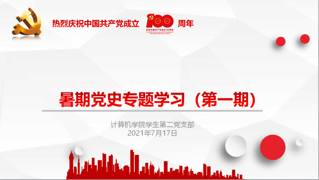 回望光辉历史,擘画光明未来。7月17日下午,计算机学院学生第二党支部开展了暑期党史专题学习(第一期)。本次专题学习活动主要围绕习近平总书记“七一”重要讲话精神展开研讨与交流。专题学习采用线上方式开展,支部党员参加,支部书记俞雪娇主持了学习活动。