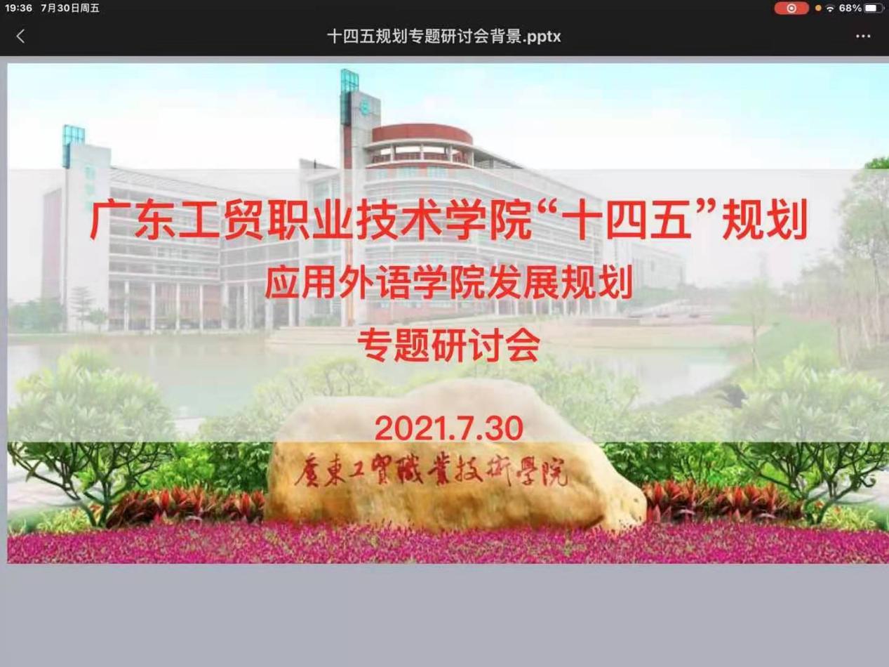 站在“两个一百年”的历史交汇点,我们迎来中国共产党成立100周年,“十四五”规划蓝图徐徐展开,8040威尼斯新征程全面开启。时不我待,只争朝夕。为进一步完善应用外语学院“十四五”规划编制,广泛听取各方面的意见与建议,7月30日晚,应用外语学院召开““十四五””发展规划线上专题研讨会。学院院长彭枚芳、副院长杨国民、邓国栋、党总支副书记罗春科、专业带头人曾昭涛教授、梁艳华副教授、系主任肖铁蕾、于超群以及专任教师代表出席会议,会议还邀请了新入职的陈锦英博士和黄新辉博士参会。会议由学工办主任林耀佳主持。