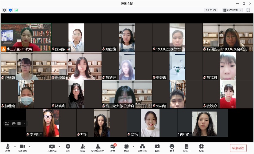 为深入贯彻落实学校党委开展党史学习教育的工作要求,8月3日,经贸学院学生第一党支部、学生第二党支部按照经济贸易学院党总支党史学习教育实施方案安排,在腾讯会议开展暑期党史专题二的学习。会议分别由支部书记吴海英、陈晓艳主持,首先学习习近平总书记在庆祝中国共产党成立一百周年大会上的重要讲话,随后学习了《毛泽东、邓小平、江泽民、胡锦涛关于中国共产党历史论述摘编》----艰苦奋斗是我们的政治本色。