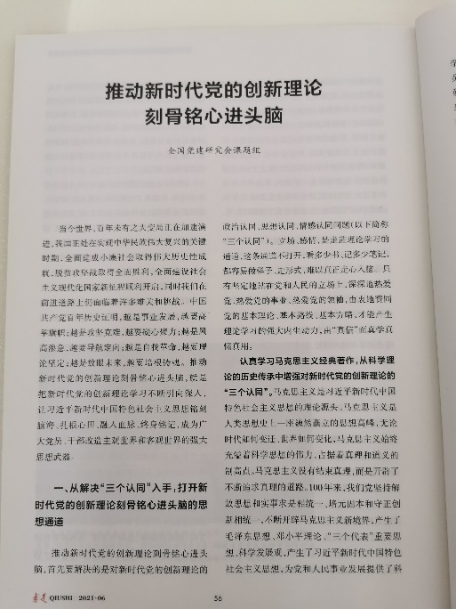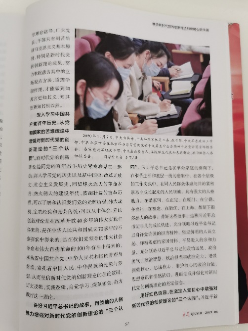 在这次专题学习研讨会上,党支部书记彭枚芳带领大家重点学习了《求是》杂志上的一篇文章:《推动新时代党的创新理论 刻骨铭心进头脑》。现如今,正是飞速发展的时代,我国正处于实现中华民族伟大复兴的关键时期,全面建成小康社会取得伟大历史性成就,脱贫攻坚战取得全面胜利,全面建设社会主义现代化国家新征程顺利开启,现在在我们前进发展的道路上机遇和难关并存。在这紧要关头我们要推动新时代党的创新理论刻骨铭心进头脑,全方位、多角度地把新时代党的创新理论学习引向深入,坚持不懈用党的创新理论最新成果武装头脑、指导实践、推动工作,让习近平新时代中国特色社会主义思想铭刻脑海、扎根心田、融入血脉、终身铭记。