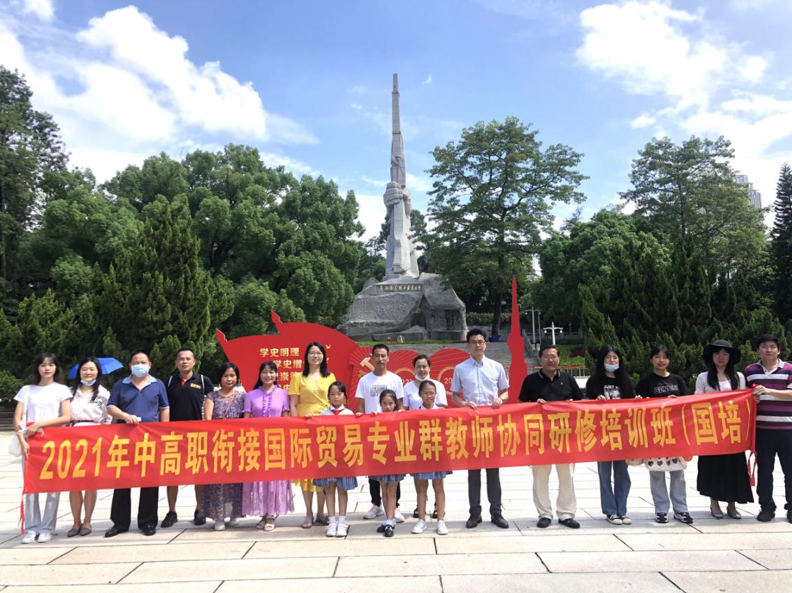 为深入学习贯彻习近平总书记在庆祝中国共产党成立100周年大会上的重要讲话精神,不断提高教师队伍的政治素质、师德修养,按照2021年中高职衔接国际贸易专业群教师协同研修培训班(国培)的课程安排,近日,在经济贸易学院党总支李繁书记和龚云副书记带领下,国培班组织全体学员开展了为期2天的广州党史学习教育基地的调研学习,进一步激发中职学员老师永远跟党走的坚定信念,树立正确历史观,传承红色基因,从百年党史中汲取奋进的力量。