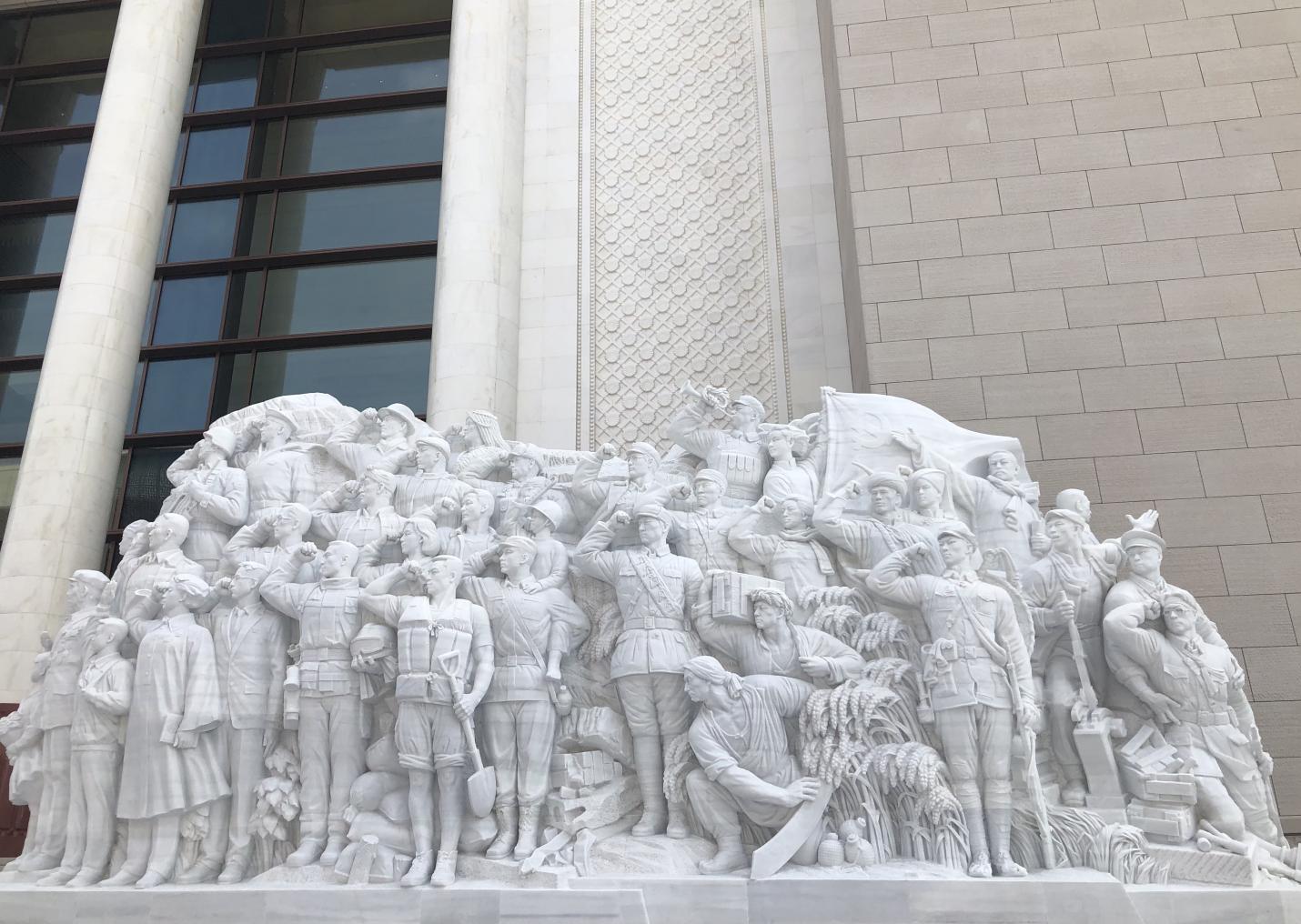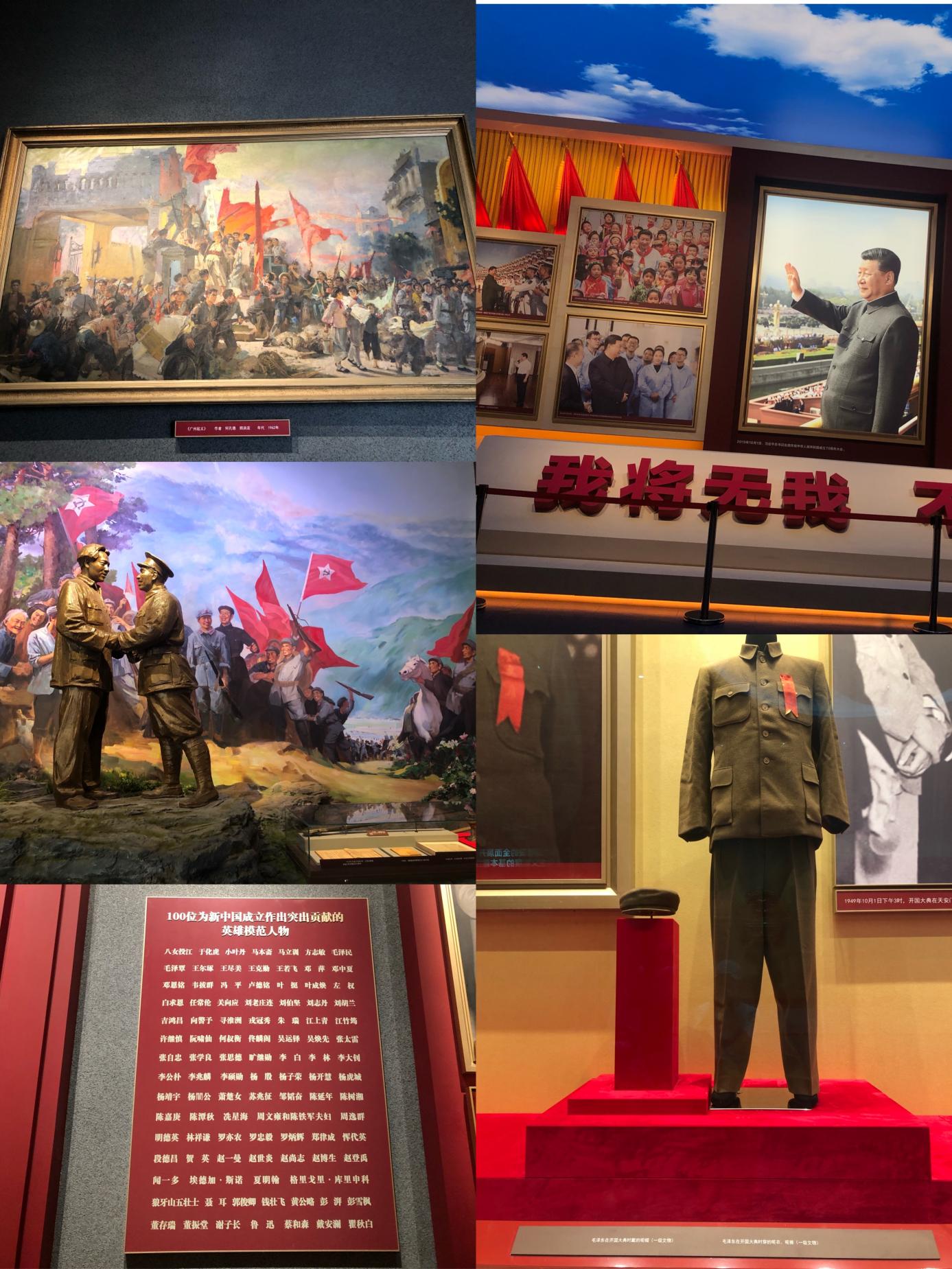 馆前广场,大型党旗雕塑《旗帜》气势如虹,《信仰》《伟业》《攻坚》《追梦》四组大型雕塑庄重、巍然。一进大厅,巨幅长城主题漆画铺展万山红遍、层林尽染、长城巍峨的壮阔图景。走进了展厅,时光的闸门徐徐打开。一张张图片、一件件文物、一个个场景再现中国共产党重整河山、改天换地的革命奋斗史。一份份手稿、一本本书籍、一张张图片,犹如历史的见证者,见证了毛泽东思想、邓小平理论、“三个代表”重要思想、科学发展观的形成发展,见证着习近平新时代中国特色社会主义思想的真理光芒。