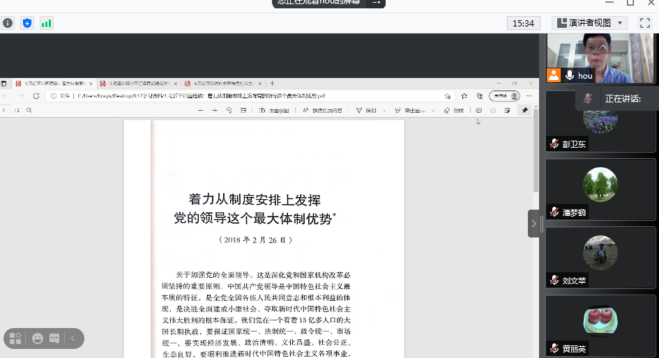 侯益坤带领全体党员学习《习近平谈治国理政:着力从制度安排上发挥党的领导这个最大体制优势》