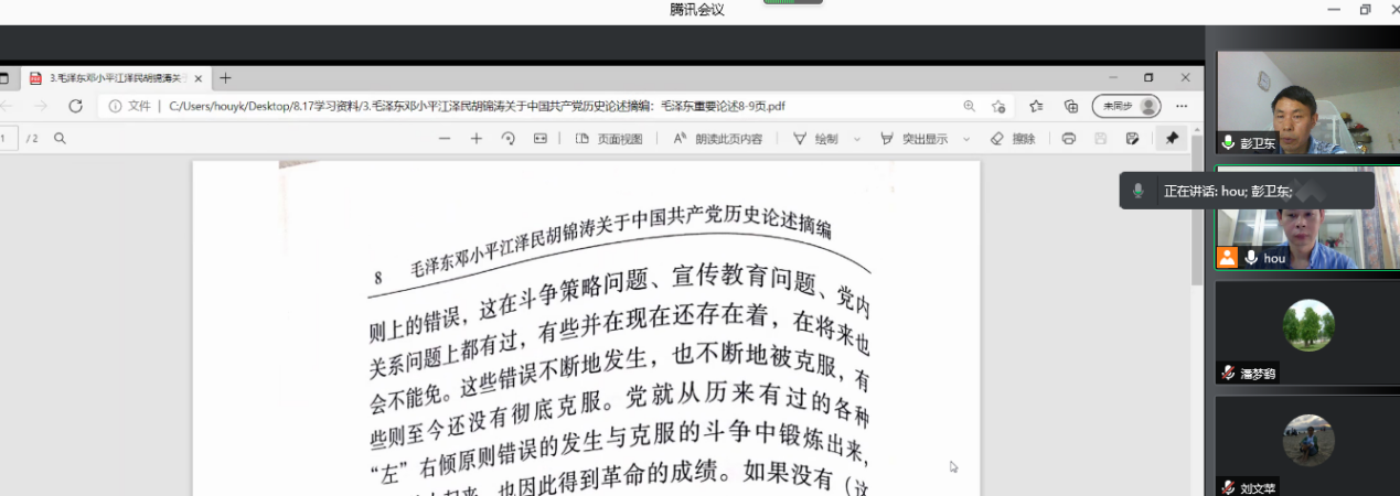 彭卫东带领全体党员学习《毛泽东邓小平江泽民胡锦涛关于中国共产党历史论述摘编:毛泽东重要论述》