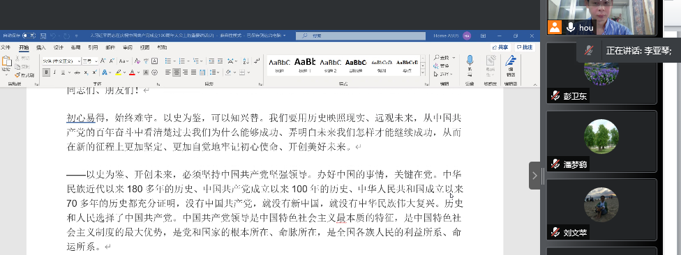 李亚琴带领全体党员学习《习近平总书记在庆祝中国共产党成立100周年大会上的重要讲话》
