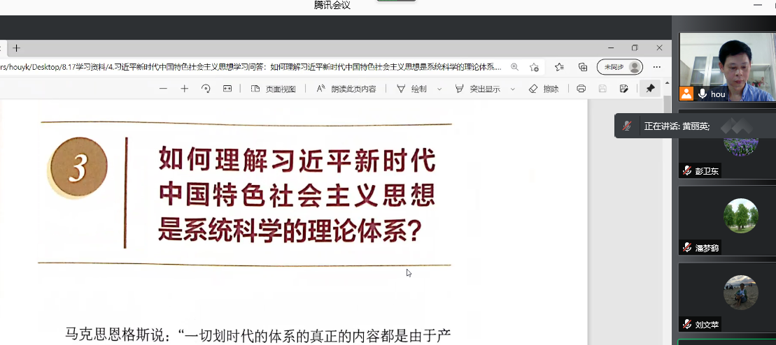 黄丽英带领全体党员学习《习近平新时代中国特色社会主义思想学习问答:如何理解习近平新时代中国特色社会主义思想是系统科学的理论体系》