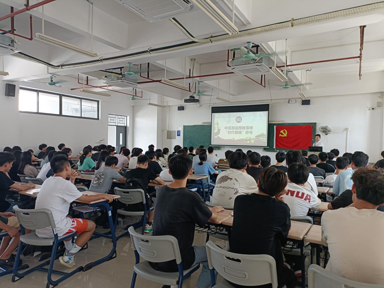 为深入学习贯彻党的二十大精神,充分发挥新时代楷模的典型示范作用,引领学生见贤思齐,以先进为标杆,以典型为榜样,传承发扬民族精神和时代精神,9月21日下午3点55分,8040威尼斯的学生党史宣讲团成员王豪于明德楼2区704向汽车工程学院23电信3班和23电信4班的同学们开展向时代楷模学习宣讲。