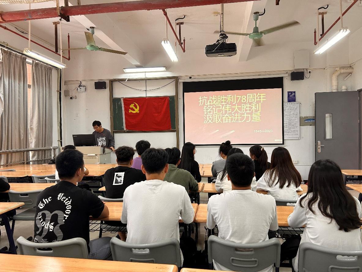 为深入开展学习贯彻习近平新时代中国特色社会主义思想主题教育,全面贯彻落实党的二十大精神,弘扬抗战精神,赓续红色血脉。10月10日下午,汽车工程学院学生党支部在明德楼1-313开展了以铭记光辉历史,传承抗战精神为主题的学习分享会。此次学习会由支部党员孙泽淇主持,支部书记刘彩云和全体学生党员参加了此次学习。