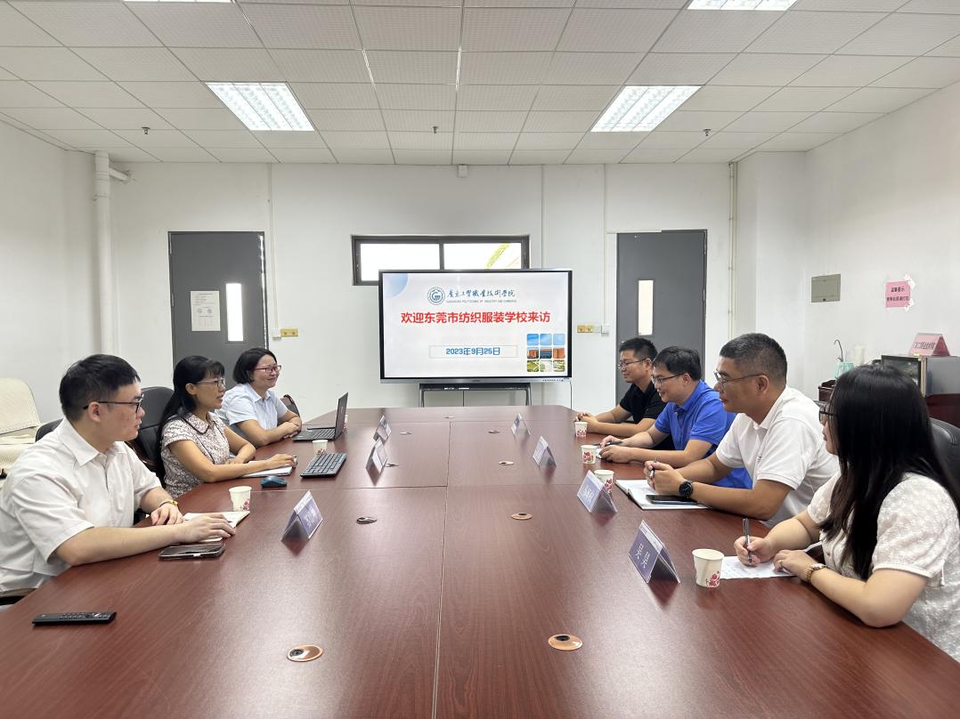 近日,经贸学院院长邱秀芳、跨境电商负责人陈建兰博士及骨干教师苏德坤接待了东莞市纺织服装学校教务处主任王创一行的到访,两校就跨境电商专业的建设进行了深入交流。
