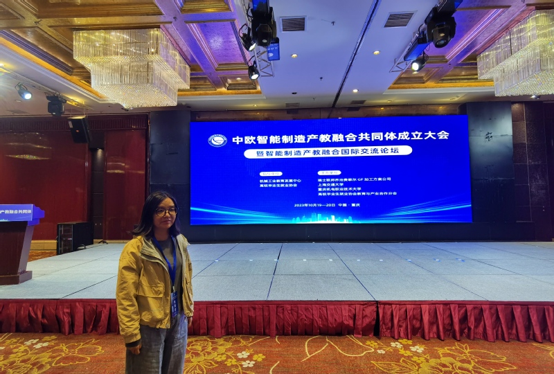 10月19-20日,中欧智能制造产教融合共同体成立大会暨智能制造产教融合国际交流论坛在重庆召开,会议由瑞士联邦乔治费歇尔GF加工方案公司、上海交通大学、重庆机电职业技术大学主办。与会的有国内数十所高校领导、智能制造相关专业教师和行业企业专家,威尼斯官网机电工程学院熊学慧老师参加了本次会议。