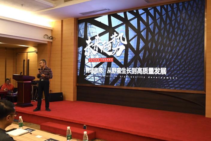 首先,广东省跨境电子商务协会林保进行分享,议题为浅谈跨境电商高质量发展,他对跨境电商未来发展趋势持肯定态度,认为跨境电商会从野蛮生长转变到高质量发展,而高质量人才则是跨境电商高质量发展的核心。